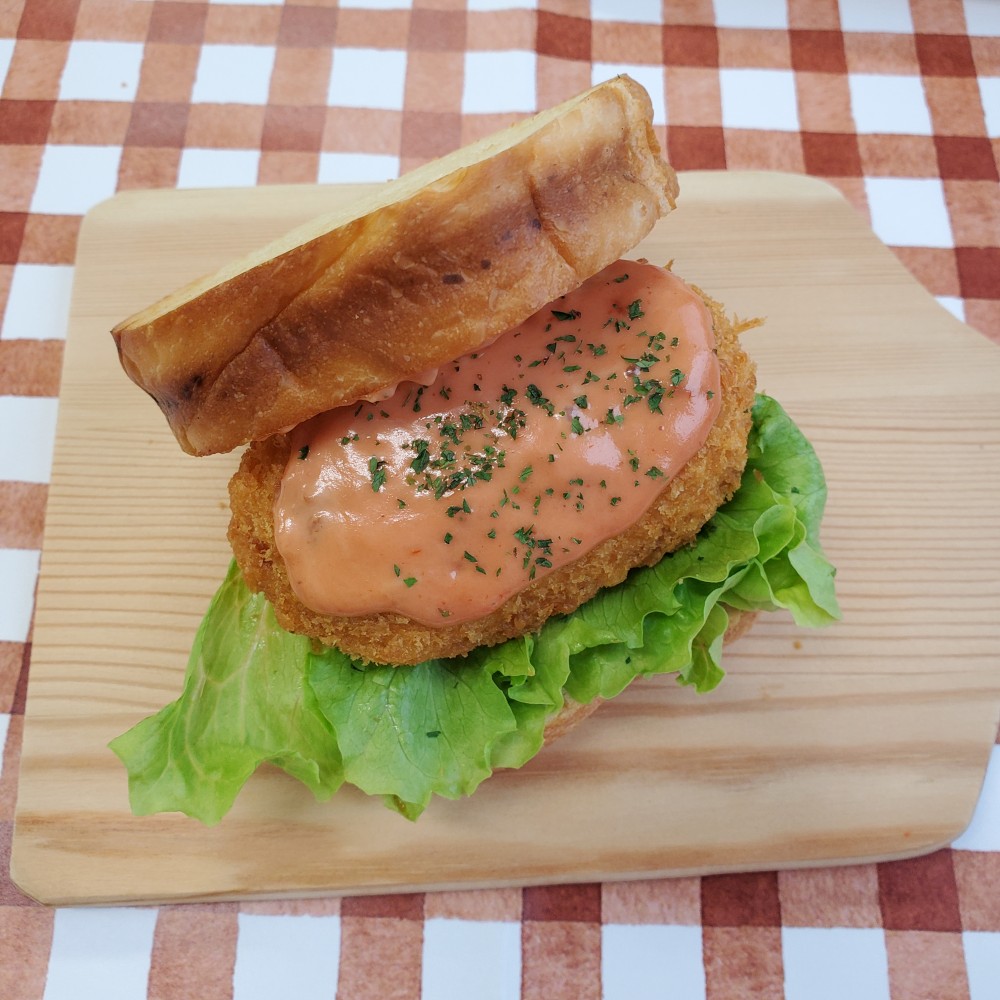 冬に食べたいカニクリームコロッケをプレーンラウンドでサンドしたバーガー🦀