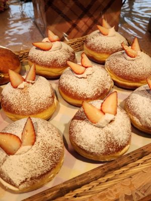 生ドーナツ(いちご)🍓 ふわふわの生ドーナツにミルキーないちごクリームを詰め込み 新鮮なイチゴをトッピングに仕上げました✨ 現在開催中の『生ドーナツフェア』の商品の1つです! たっぷりないちごクリームを口いっぱいにして生ドーナツを堪能してみてください!